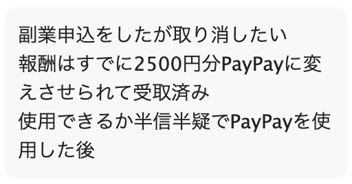 こちらの相談者の方は報酬として2500円分のPayPayを受け取ったという報告がありました。