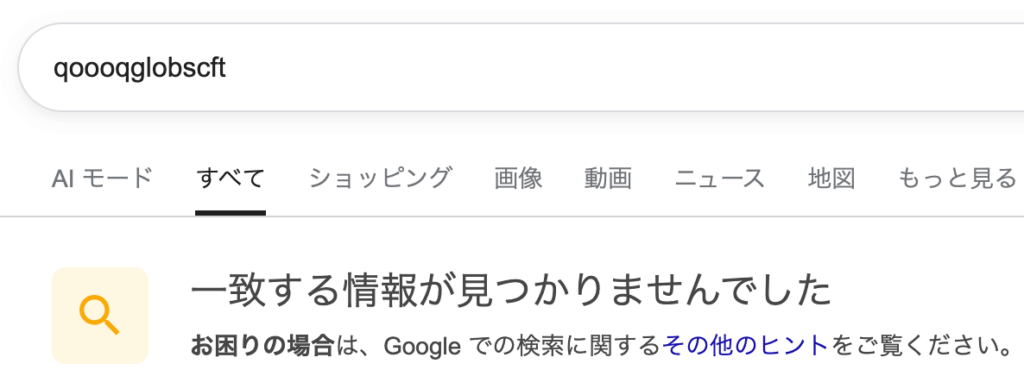 こちらは、Googleで「qoooqglobscft」を検索した結果になります。