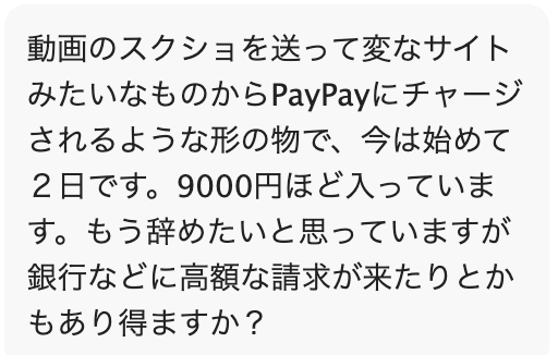 こちらの画像は、相談者からの内容ですが、PayPayに9000円ほどのチャージがあったと書かれています。