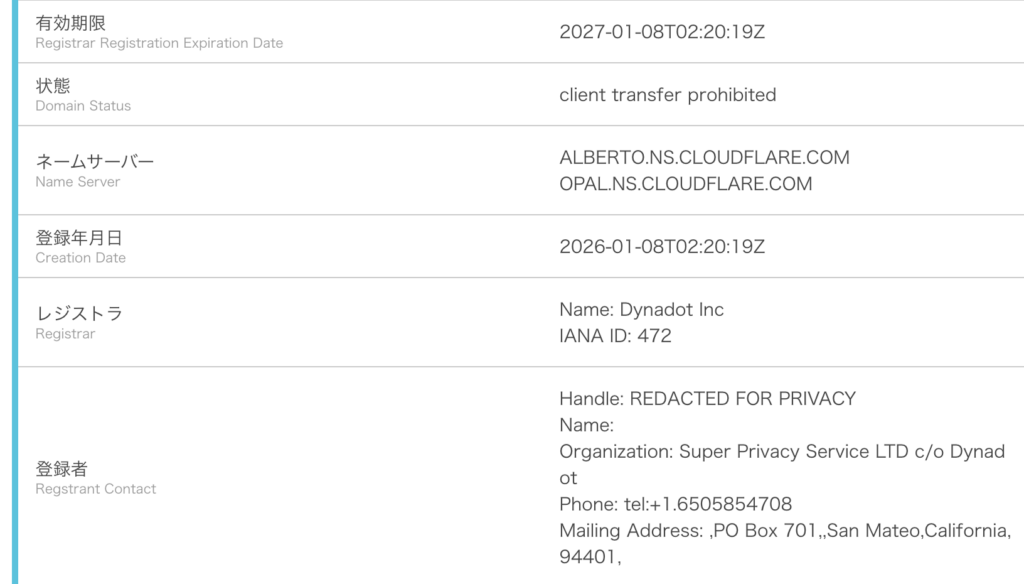 - 登録日は2026年1月8日