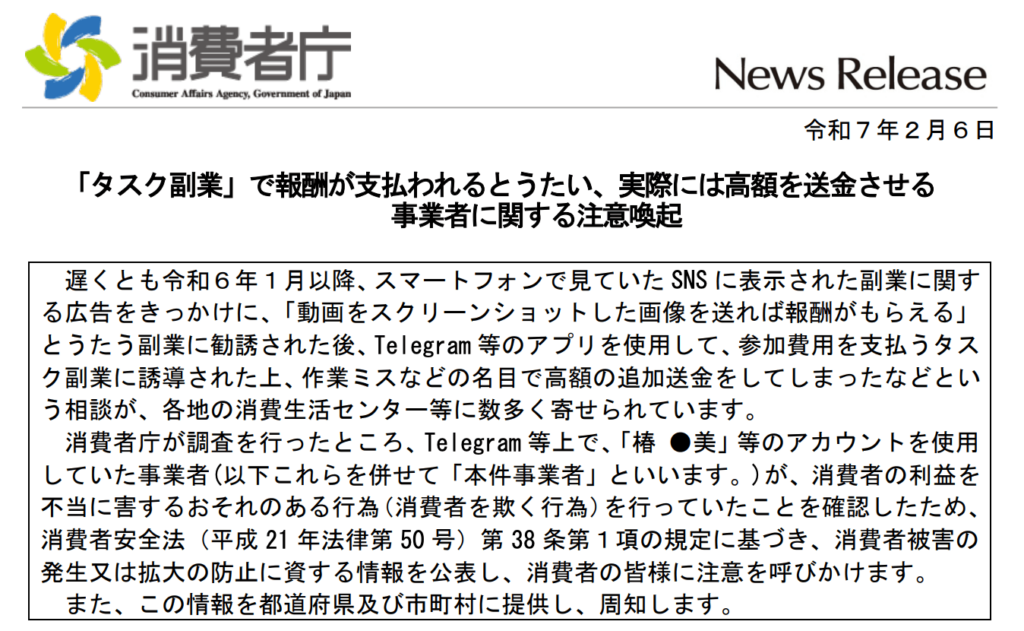 - 消費者庁からも注意喚起