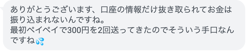 こちらの方からは、報酬をPayPayで受け取った代わりに口座情報が抜き取られたといった相談になっています。