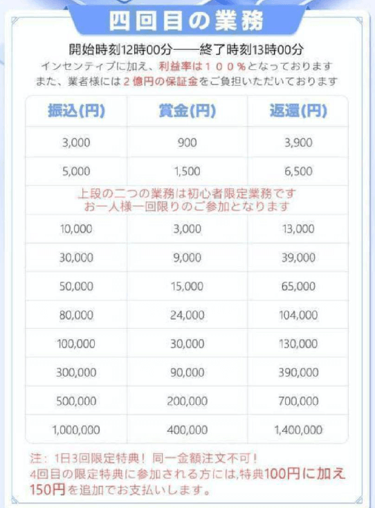 この業務を1回クリアしてください。この業務のコミッションは100円+150円です.