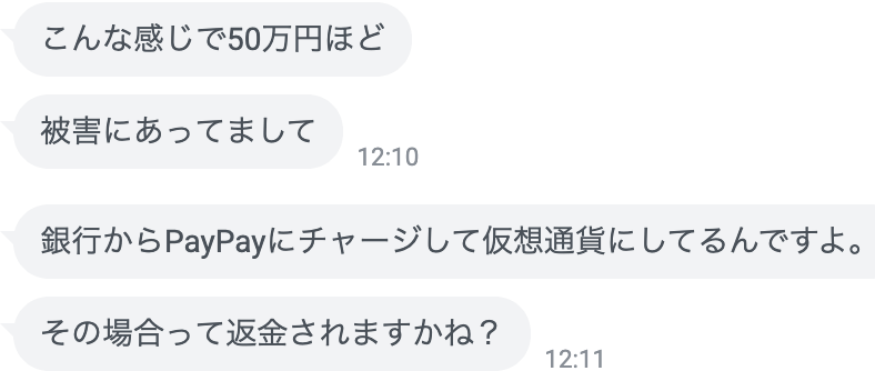 PayPayを使って例の仮想通貨もどきの業務を行って資金が尽きてしまった例です。