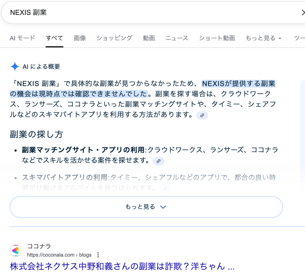 その他、「株式会社ネクサス」の情報はありましたが、これは全く別のものです。