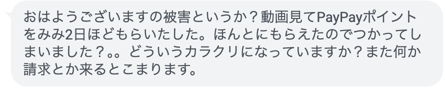 騙されるポイントは、PayPayで報酬が受け取れることにあると思います。