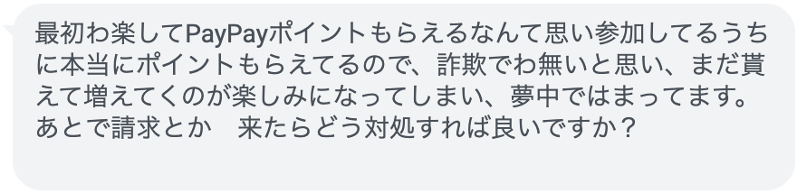 こちらの方は、2日間でPayPayポイントをもらったようですが、不安を抱えているようでした。