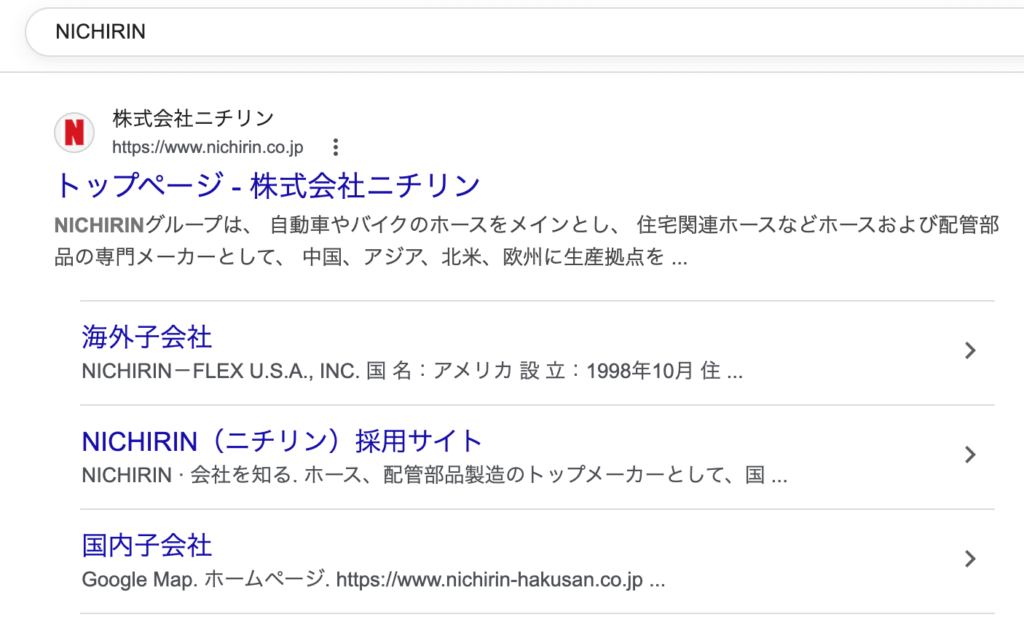 「NICHIRIN」で検索したところ、これらの会社がHIT。