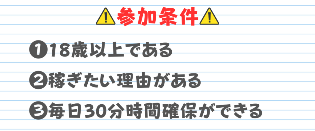 この3つに当てはまる場合のみ、このアフィの参加権があるとお考えください。