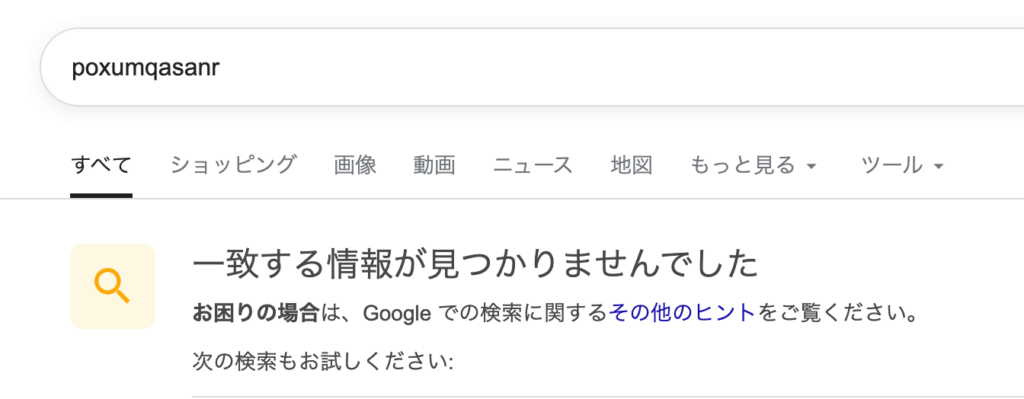 ご覧の通り、検索結果は一つも表示されていないことが分かります。