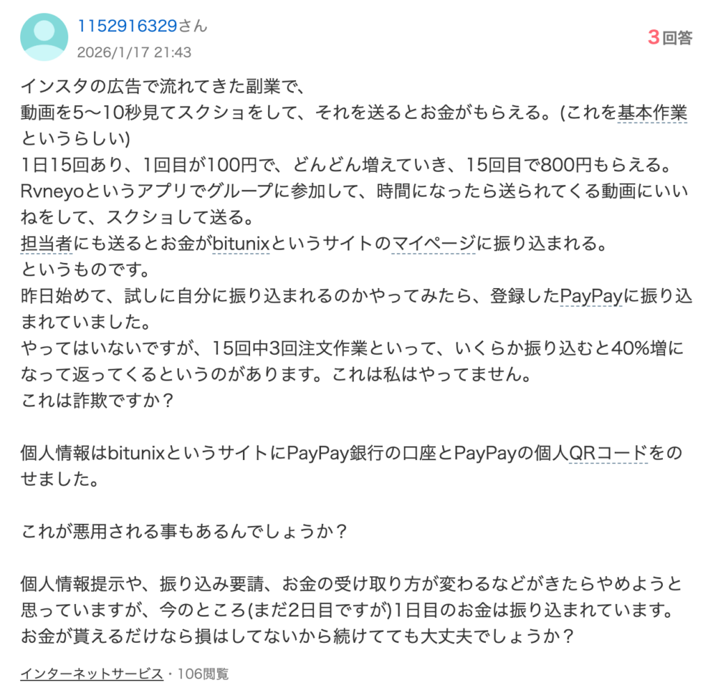 Rvneyoは、タスク型詐欺と呼ばれる代表的なものになります。